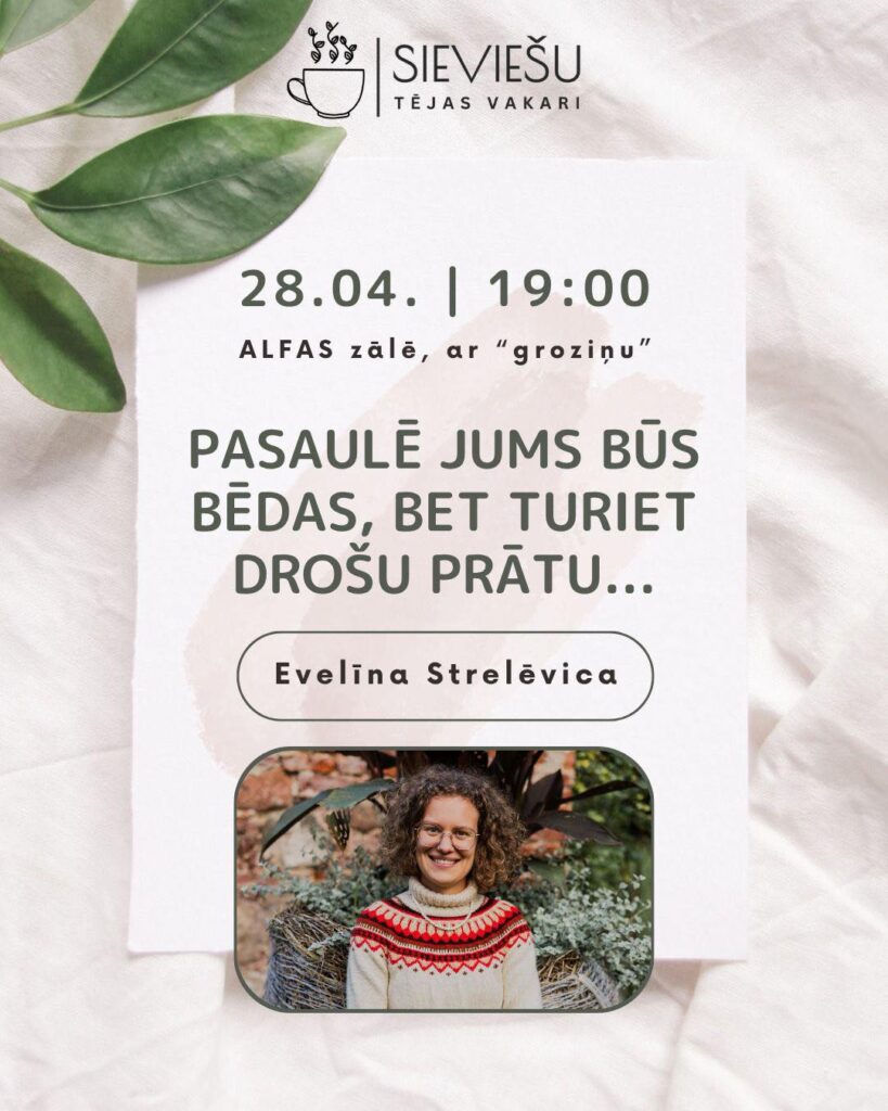 Šoreiz savā stāstā ar mums dalīsies Evelīna. Kā vienmēr priecāsimies jūs redzēt kādu mirkli pirms 19:00, lai varat mierīgi sagatavoties vakaram, uztaisīt tēju un atrast sarunu galdiņu. Lūgums līdzi paņemt groziņu.